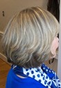 Jodi wanted a change when she was referred to London Bob Stylist Terri Thomas. Terri began by accentuating Jodi's beige tones with blonde highlights to help blend her gray. Next, Terri carefully cut eight inches from Jodi's length so Jodi could donate her locks. Her hair will be used to make free real-hair wigs for women with cancer. Terri added side swept bangs to add softness to her new blended, layered bob. Jodi left London Bob with a fresh new look!